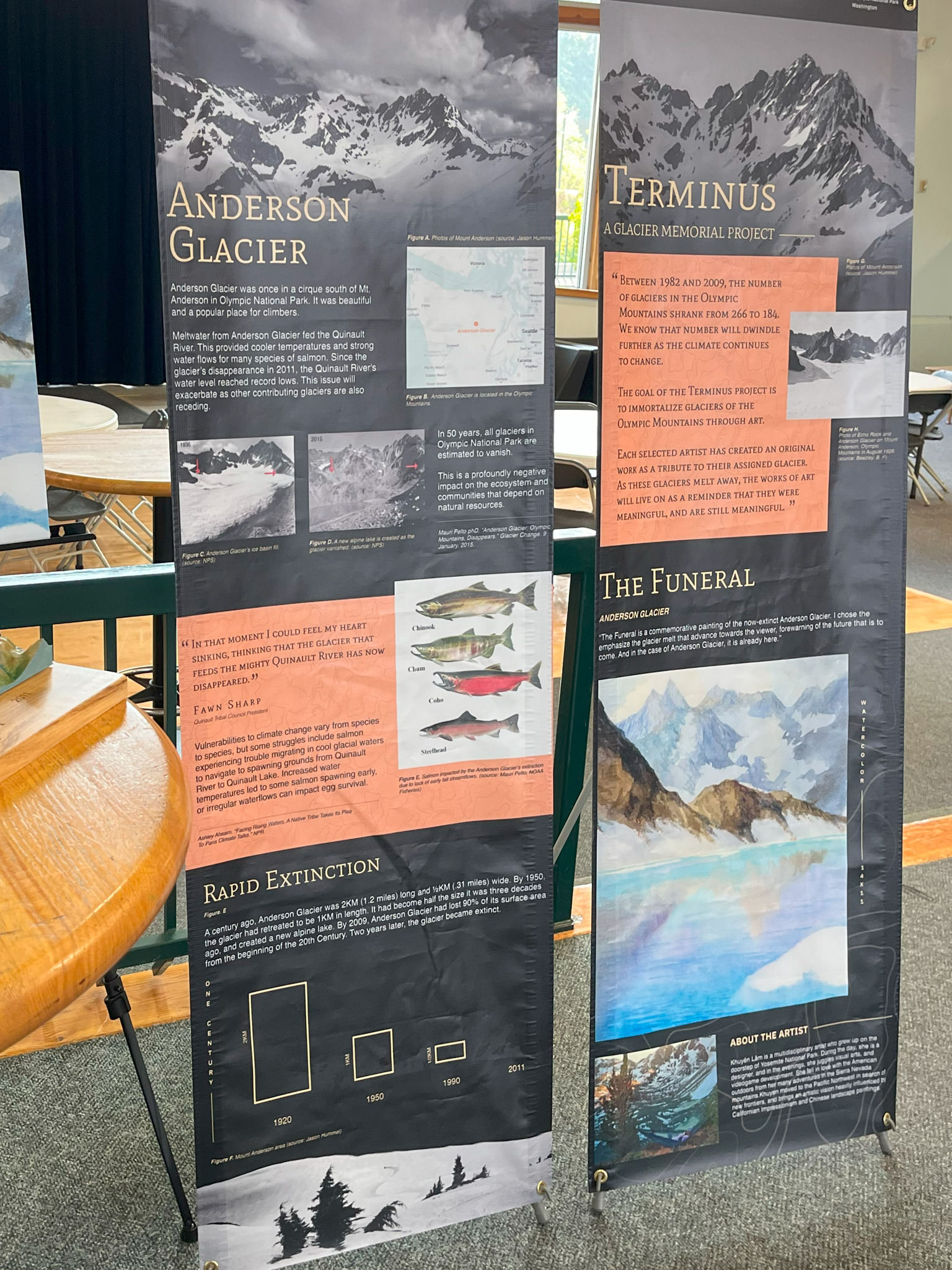 For our presentations, I wasn’t sure if I would have Wifi or electrical outlets in the middle of the rainforest. I designed two portable displays with information on the Terminus project, and Anderson Glacier.